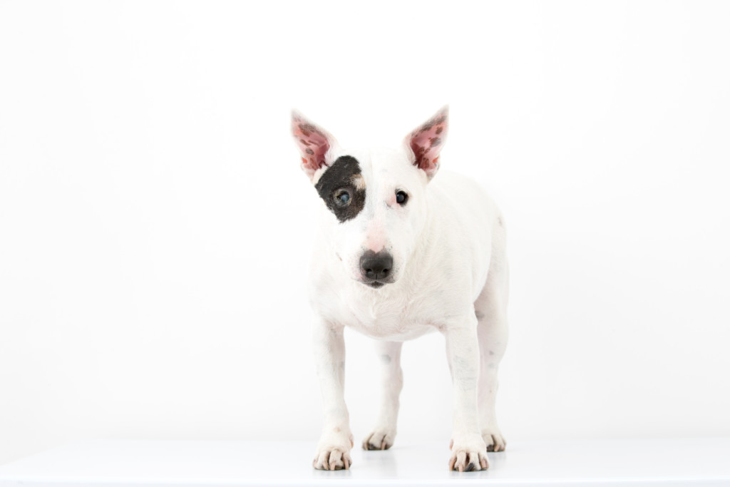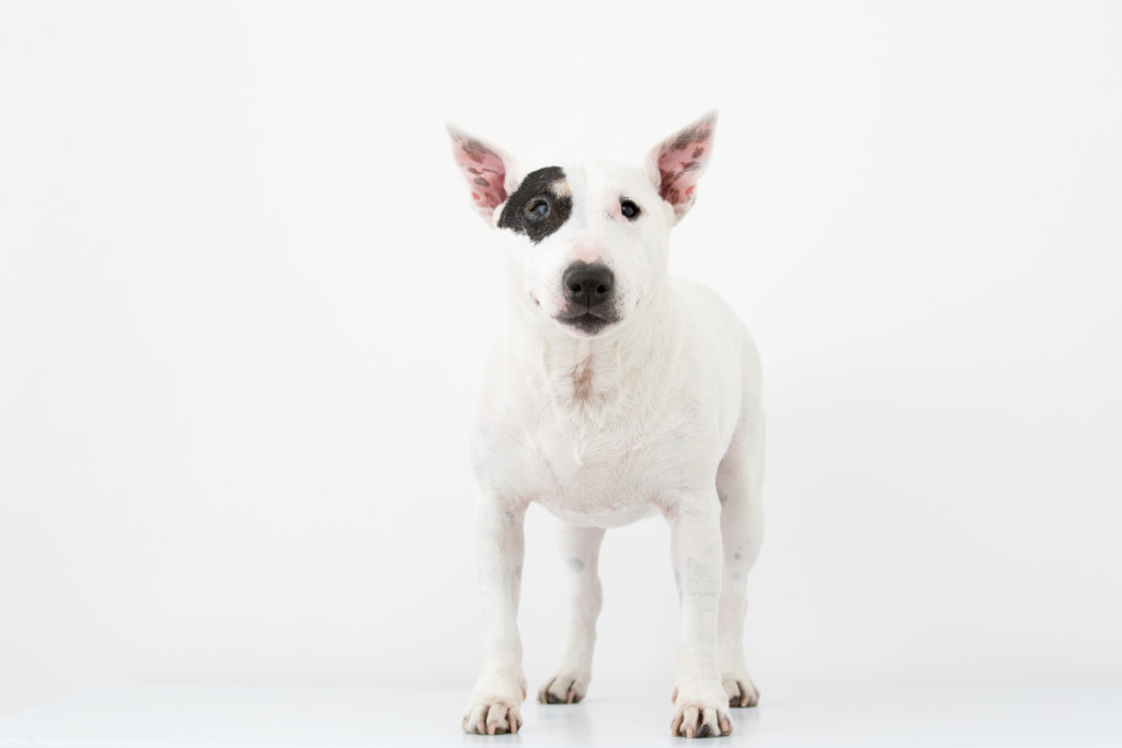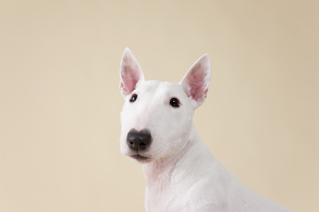 ミニチュアブルテリアには被毛のカラーバリエーションがあります。ホワイト、ブリンドル、ブラックブリンドル、レッド、フォーン、トライカラーが認められていて、ブルーやタンは好ましくないとされています!