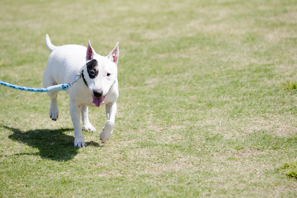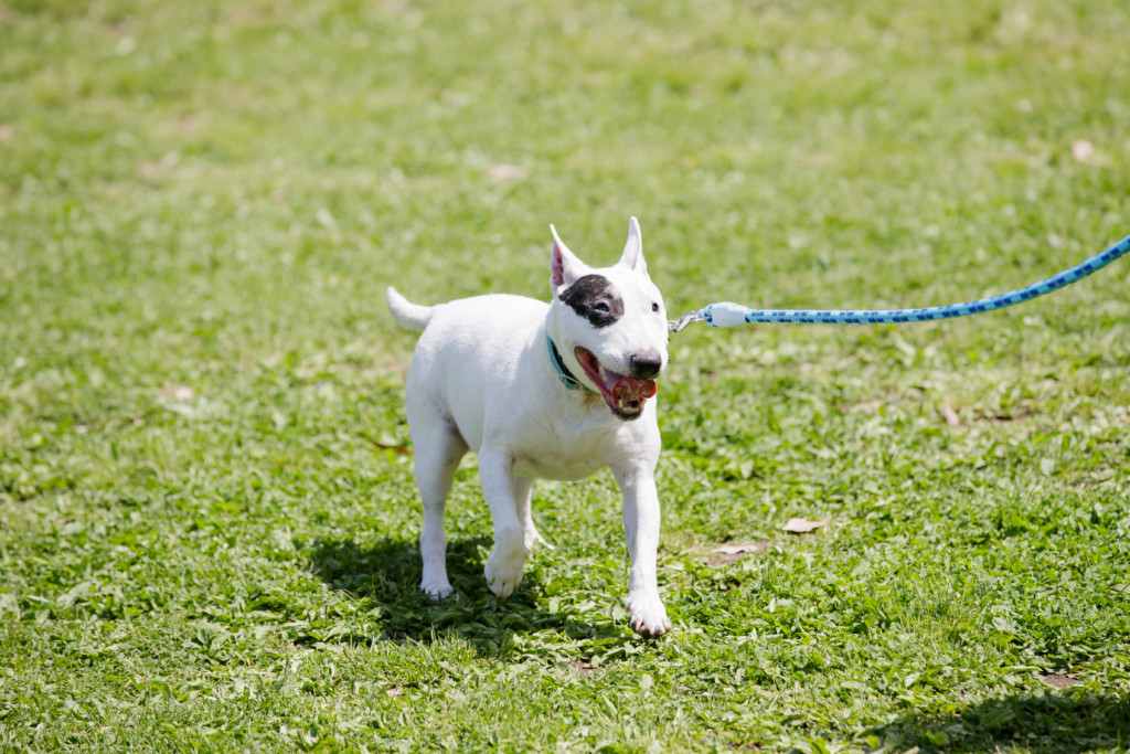 ミニチュアブルテリアは闘犬でしたので、とても体力があり運動量も多いので、十分な運動をさせてあげてくださいね!必ずしも走り回らせなければならないわけではありませんが、ボールを追いかける遊びなどはシンプルですがとても楽しそうに遊んでくれますしドッグランもストレス発散になり無駄吠えも減ると思いますよ!あとは大きなものを引っ張る作業も楽しんでくれます。