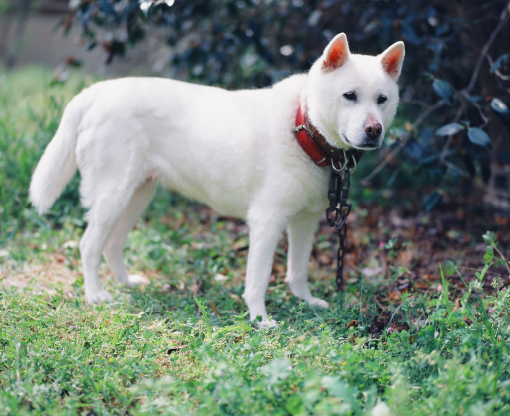 昭和9年に日本の天然記念物に指定された紀州犬です。紀伊半島に生息して、狩猟犬としてイノシシやシカなどを捕らえる猟に活躍していました。実は紀州犬が生息していたところは山奥だったりしたので同じ紀伊半島でも地域ごとに独自の犬として飼われていました。熊野犬、日高犬、太地犬、高野犬、明神犬、那智犬などがそれです。そして、紀州犬が天然記念物に指定されるにあたり、これらの犬は全て同じ紀州犬として扱うこととなりました。これらの犬は白だけではなく、虎色や胡麻色などが存在していますが、白色がとても人気があったため紀州犬といえば白が圧倒的に多いという状況になっています。山奥でイノシシやシカなどを捕まえる役割があったため白だとイノシシなどの野生動物と間違って撃ってしまうこともなかったので白色は猟犬としては好ましい色だったわけです。