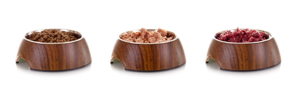 犬の餌には主に「ドライフード」「ウェットフード」「セミドライフード」「セミモイストフード」の4種類があります。